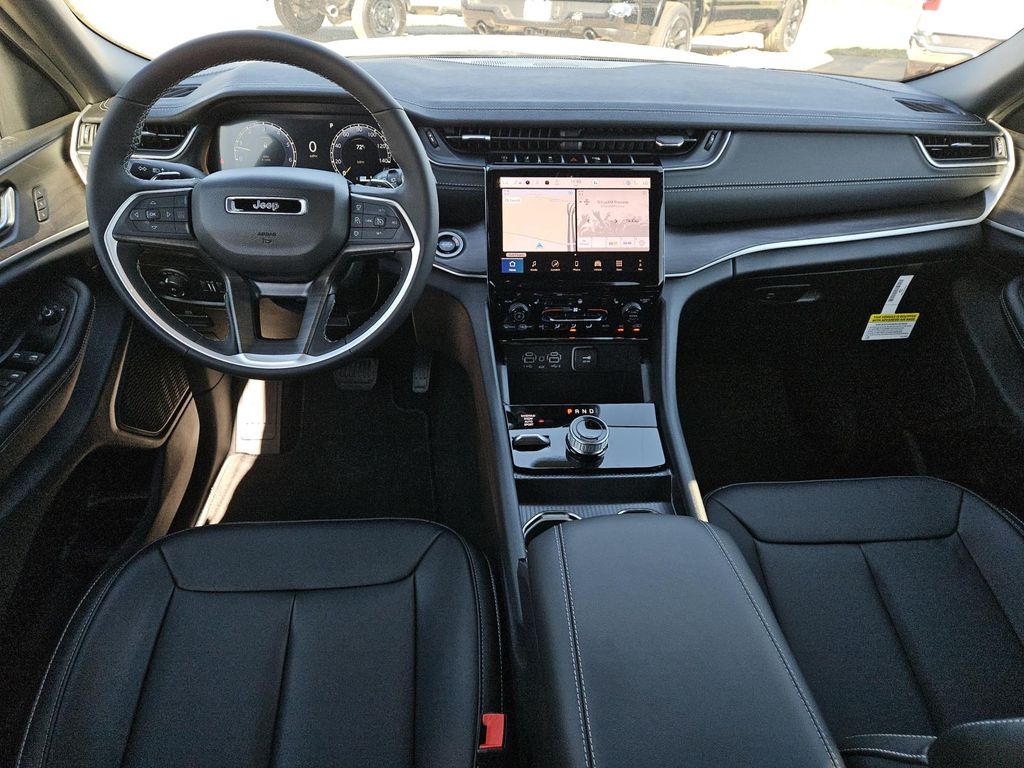 Quick Order Package 23E,Blackout Model: Delete Limited Badge; 265/50R20 Performance All Season Tires; 20″ X 8.5″ Black Painted Aluminum Wheels; Gloss Black Exterior Accents; Dual Pane Panoramic Sunroof,Dual Pane Panoramic Sunroof,Power liftgate rear cargo door,Integrated navigation system with voice activation,Blind Spot Detection,Keyfob remote start,Heated steering wheel,Uconnect w/Bluetooth handsfree wireless device connectivity,Wireless Apple CarPlay/Android Auto smart device wireless mirroring,Heated driver and front passenger seats,12 USB ports,First and second-row sliding and tilting glass sunroof with express open/close activation sunshade,Leatherette front seat upholstery,Driver seat with 8-way directional controls,Front passenger seat with 8-way directional controls,Keyfob trunk control,10.1 inch primary display,Full Speed Forward Collision Warning Plus,Pedestrian/Cyclist Emergency Braking,4G LTE Wi-Fi Hot Spot mobile hotspot internet access,ParkView rear mounted camera,Active Lane Management,Cross Path Detection collision mitigation,Adaptive Cruise Control w/Stop & Go,Predictive brake assist system,Cruise control with steering wheel mounted controls,Heated rear seats,Primary monitor touchscreen,Fixed third-row seats,Driver seat power reclining, lumbar support, cushion tilt, fore/aft control and height adjustable control,Quadra-Trac I automatic full-time 4WD,Pentastar 3.6L V-6 DOHC, variable valve control, regular unleaded, engine with 293HP,Pentastar 3.6L V-6 DOHC,Cabin camera,Smart key with hands-free access and push button start,Smart device remote start,Push-button,Bluetooth wireless audio streaming,Gauge cluster display size: 10.25,Following distance alert,Dual-zone front climate control,Rear climate control system with separate controls,Voice-activated climate control,Full gauge cluster screen,Auto high-beam headlights,Second-row bucket seats,Sentry Key immobilizer,Jeep Connect vehicle tracker,Selectable Terrain Modes,Active noise cancellation,Connected Travel & Traffic Services real-time traffic,Vehicle integrated emergency SOS system