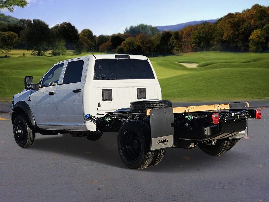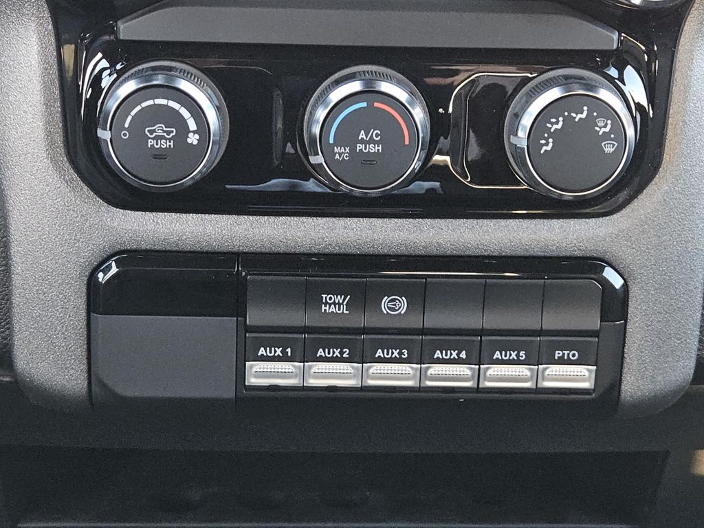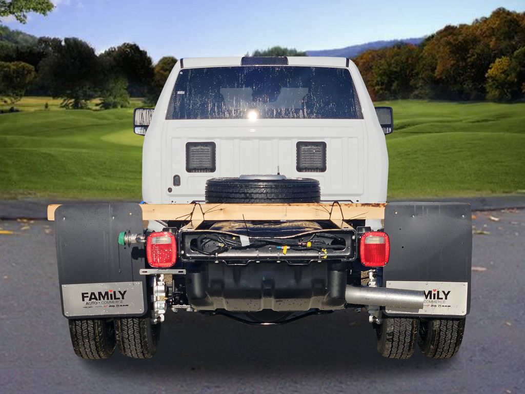 Cold Weather Group: Engine Block Heater; MOPAR Winter Front Grille Cover,Quick Order Package 25A Tradesman,Quick Order Package 2XA Tradesman,52 and 22 Gallon Dual Fuel Tanks,ParkView Rear Back-Up Camera,Full Size Spare Tire,Forward Collision Warning-Plus,Uconnect w/Bluetooth handsfree wireless device connectivity,Apple CarPlay/Android Auto smart device wireless mirroring,Vinyl front seat upholstery,Driver seat with 4-way directional controls,Front passenger seat with 4-way directional controls,8.4 inch primary display,Pedestrian/Cyclist Emergency Braking,4G LTE Wi-Fi Hot Spot mobile hotspot internet access,ParkView rear mounted camera,Adaptive cruise control with stop and go,Cruise control with steering wheel mounted controls,Primary monitor touchscreen,19.5 x 6-inch front and dual rear black steel wheels,Part-time 4WD,Cummins 6.7L I-6 diesel direct injection, VVT intercooled turbo, diesel, engine with 360HP,Cummins 6.7L I-6,Push-button,Bluetooth wireless audio streaming,Following distance alert,Smart key with push button start,Sentry Key immobilizer,RAM Connect vehicle tracker,RAM Connect vehicle integrated emergency SOS system,Trailer sway control,External memory control,Internet radio capability,5 USB ports,Electronic stability control system,Rear Seat Reminder Alert rear seat check warning,LED front fog lights,Active grille shutters,Manual rear child safety door locks,RAM Connect App mobile app access,Illuminated front beverage holders,Gauge cluster display size: 3.50,Manual tilting steering wheel,Wheel hub covers,Manual extendable trailer mirrors,Upfitter switches,Dual rear wheels,Over the air updates,Metric measure truck 225/70R19.5 AS BSW 651 RPM front and rear tires,2 airbags,Driver front impact airbag,Passenger front impact airbag,Airbag occupancy sensor,Auto-locking doors,Valet key,Intercooled turbo