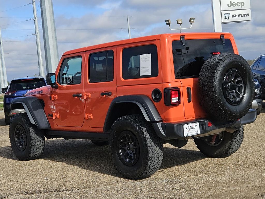 Technology Group: Cluster 7.0″ TFT Color Display; 2-Door Passive Entry, Front Door Locks; SiriusXM Satellite Radio; Air Conditioning with Auto Temp Control; Air Filtering,Xtreme 35 Tire Package: LT315/70R17C 113/110S Tires; Wheel Flare Extensions; MOPAR Tire Relocation Kit; Anti-Lock 4-Wheel Disc Perf Brakes; Conventional Differential Front Axle; 4.56 Rear Axle Ratio; Injection Molded Black Rear Bumper; Dana M210 Wide HD Tube Front Axle; Anti-Spin Differential Rear Axle; 5,900 lbs (2,676 Kg) GVWR; Daytime Running Lamps LED Accents; Wheels: 17″ X 8″ Beadlock Capable; Daytime Running Lamp System; 35″ Tire Suspension; MOPAR Hinge-Gate Reinforcement; MOPAR Jack Spacer; Dana M220 Wide Rear Axle; Molded in Color Rubicon Highline Flare,Quick Order Package 25d High Tide: Freedom Panel Storage Bag; Rear Window Defroster; Speed Sensitive Power Locks; Rear Window Wiper/washer; MOPAR All-Weather Floor Mats; Front 1-Touch Down Power Windows; Daytime Running Lamps LED Accents; High Tide Hood Decal; Corning Gorilla Glass; Security Alarm; MOPAR Sunrider For Hardtop; Mold in Color Bumper with Gloss Black; Body Color 3-Piece Hard Top; Automatic Headlamps; Deep Tint Sunscreen Windows; Rock Protection Sill Rails; 97 MPH Vehicle Max Speed Calibration; Power Heated Mirrors; No Soft Top; High Tide Package; Premium Wrapped Steering Wheel; Remote Keyless Entry; Sun Visors with Illuminated Vanity Mirrors,LED Headlamp and Fog Lamp Group: Front LED Fog Lamps; LED Premium Reflector Headlamps,Punkn Metallic Clearcoat,SiriusXM Satellite Radio,Apple CarPlay/Android Auto smart device mirroring,Uconnect w/Bluetooth handsfree wireless device connectivity,Cloth front seat upholstery,Driver seat with 6-way directional controls,Front passenger seat with 4-way directional controls,3 USB ports,7 inch primary display,ParkView rear mounted camera,Brake assist system,Cruise control with steering wheel mounted controls,Sunrider manual convertible roof,Primary monitor touchscreen,Command-Trac part-time 4WD,Pentastar 3.6L V-6 DOHC, variable valve control, regular unleaded, engine with 285HP,Pentastar 3.6L V-6 DOHC,Smart key with hands-free access and push button start,Push-button,Bluetooth wireless audio streaming,Dual-zone front climate control,Selec-Speed Control off-road speed control,Sentry Key immobilizer,Vehicle tracker,SiriusXM Guardian vehicle integrated emergency SOS system,Trailer sway control,External memory control,Internet radio capability,Configurable instrumentation gauges,Beadlock capable,Electronic stability control system with anti-roll,Selec-Speed Control hill descent control,Hill start assist,Flip-up rear windshield,Automatic climate control,LED daytime running lights,LED front fog lights,Manual rear child safety door locks,Regenerative brakes,Illuminated front beverage holders,Illuminated rear beverage holders,Heated driver and passenger side door mirrors,Gauge cluster display size: 7.00,Manual tilting steering wheel,Manual telescopic steering wheel,Auto stop-start engine,Metallic paint,17 x 8-inch front and rear black aluminum wheels,Over the air updates,LT315/70SR17 AT BSW front and rear tires,4 airbags,Driver front impact airbag,3.6L V6 Engine,Aluminum/Alloy Wheels,Hard Top,Heated Exterior Mirrors,Power Adjustable Mirrors,Power Door Locks,Power Windows,Univ Garage Door Opener,V6; VVT; eTorque; 3.6 Liter,Automatic; 8-Spd,4WD,Extreme Recon 35″ Tire Pkg,High Tide Pkg,Rollover Mitigation,Hill Start Assist Control,Traction Control,Electronic Stability Control,ABS (4-Wheel),Alarm System,Keyless Entry,Push Button Start,Air Conditioning,Cruise Control,Power Steering,Tilt & Telescoping Wheel,AM/FM Stereo,Bluetooth Wireless,Uconnect,Backup Camera,Dual Air Bags,Side Air Bags,Daytime Running Lights,LED Headlamps,Fog Lights,Alloy Wheels